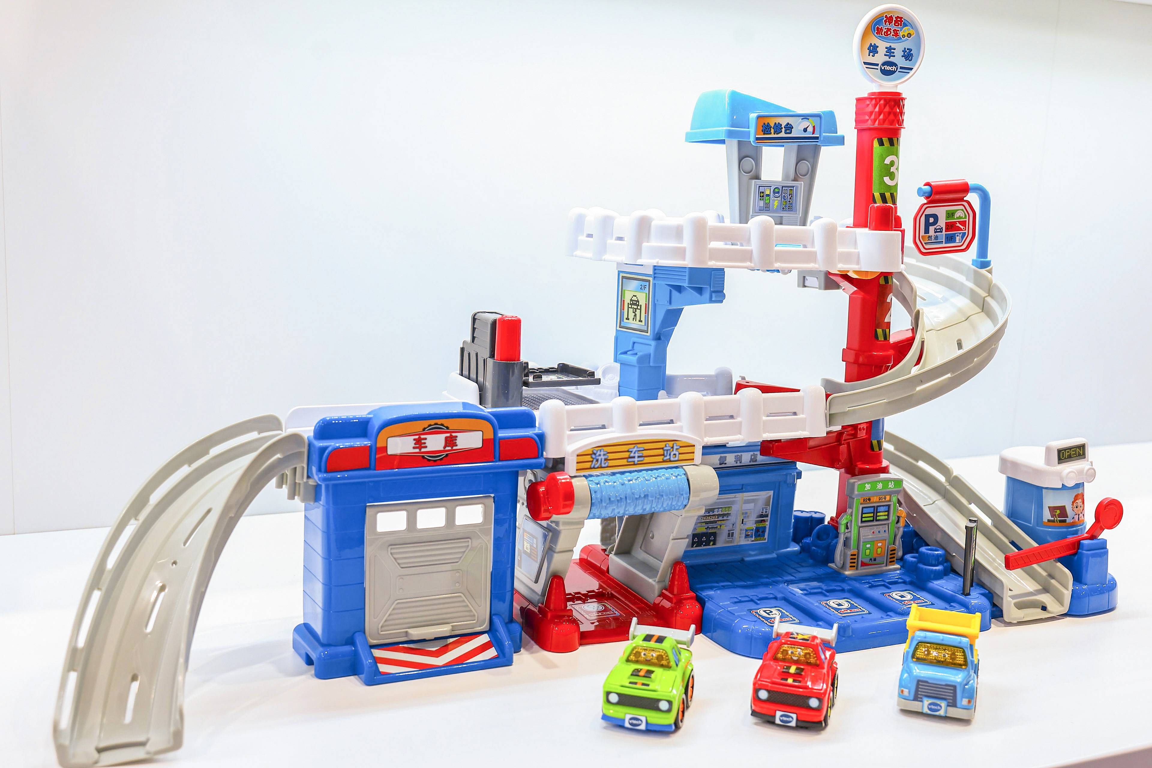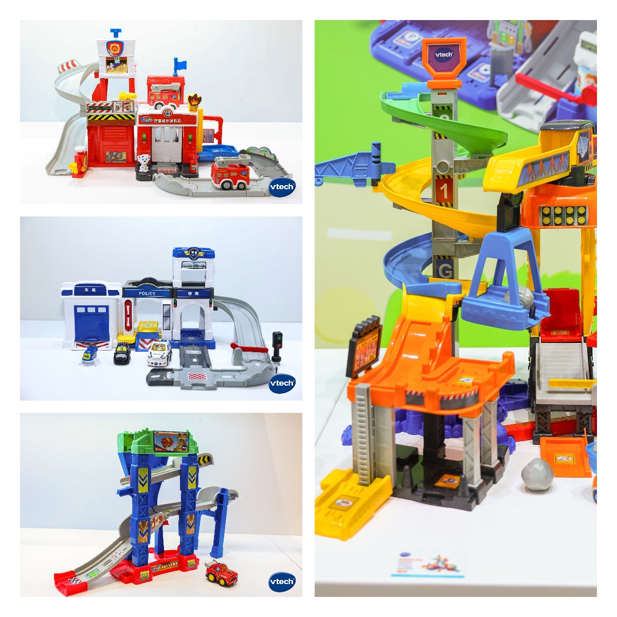 神奇轨道车系列同样新品多多,本届展会上,伟易达带来了多功能停车场、4合1飞车赛道、新城市警察局、智能趣味吊塔、智慧城市消防局等多款产品。这之中,尤其以多功能停车场和智能趣味吊塔两大最为吸睛。