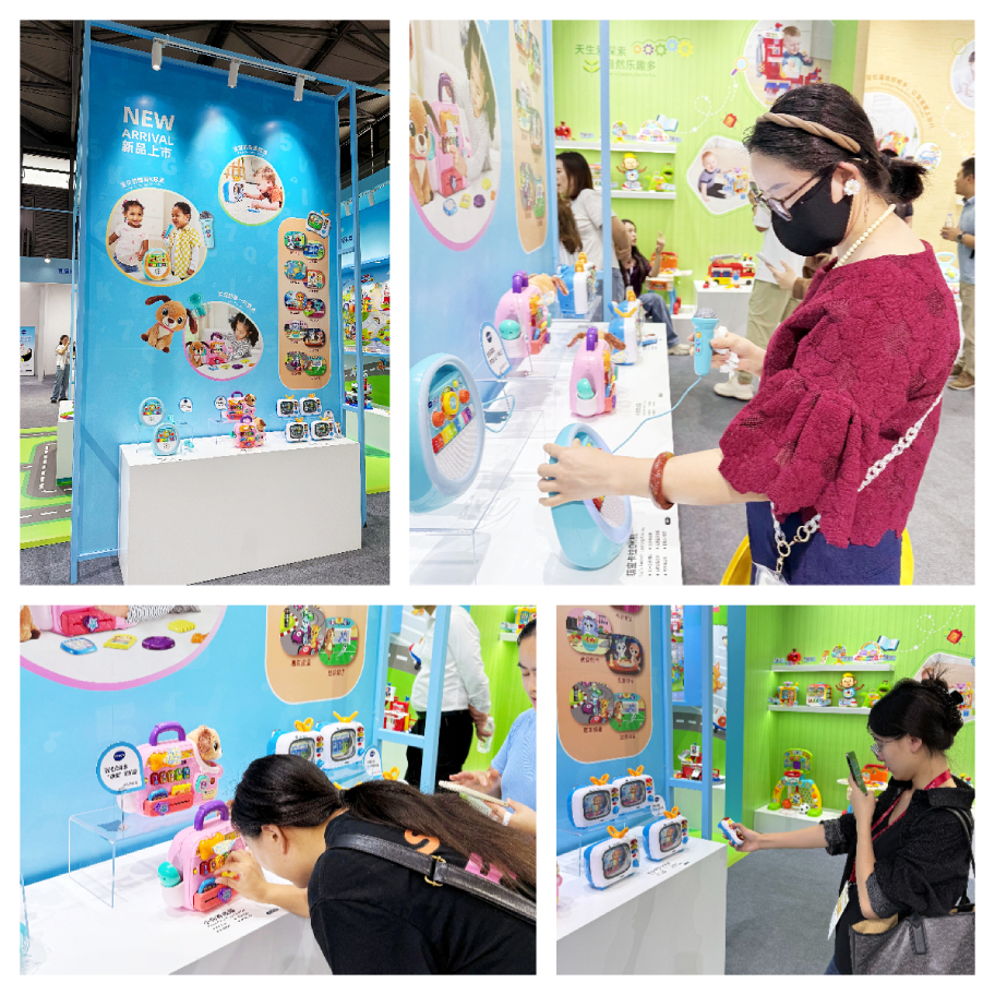 本次展会上,伟易达还有三款重磅产品首发亮相,引发专业买家们的浓厚兴趣。“双语遥控小电视”,以复古卡通造型轻松勾起家长们的怀旧情结,针对家长们“让孩子远离电视”的痛点,创新性地将电视观看形式与遥控、图画、歌曲、语言学习相结合,通过模拟真实频道切换的互动方式,让幼儿在无形中减少“电子依赖”,收获更多乐趣;“萌宝卡拉OK机”则专注幼儿音乐启蒙,其专为儿童设计的丰富功能如自由演唱、变声录音、音乐播放、蓝牙连接等,为幼儿提供了展现音乐天赋的随身小舞台,现场试听试玩的买家无不给予好评;"小狗养成屋"以情感教育为切入点,通过宠物养育模拟,帮助儿童在互动中培养责任心和同理心,同样得到了买家们的肯定。