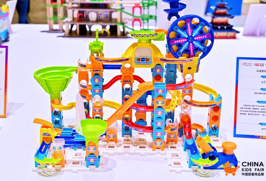 此外,伟易达经典产品“滚珠大冒险·摩天轮轨道积木套装”与“火箭轨道积木套装”依然保持着强劲的吸引力。经过市场验证的这两款产品,继续受到主办方的青睐,作为STEAM玩具的“典范之作”受邀在STEAM展区集中展示,印证其优秀的产品品质和教育价值。