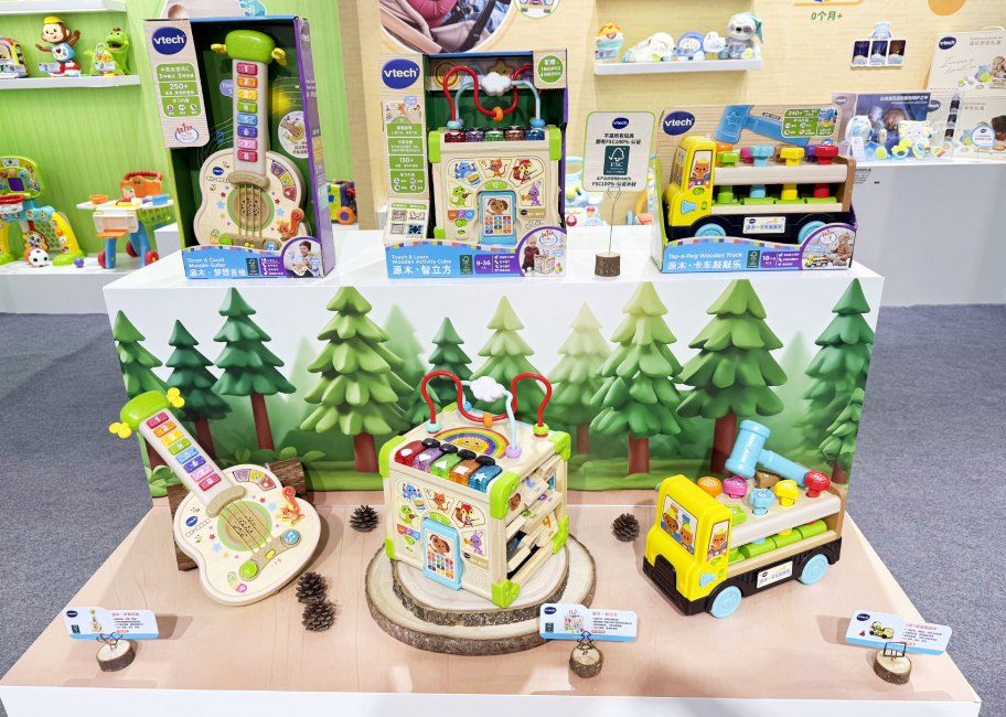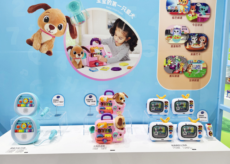 本次展会上,伟易达还有多款重磅新品亮相,引发专业买家们的浓厚兴趣。如“视听百科地球仪”,将枯燥的地理知识转化为生动冒险奇旅,让孩子足不出户也能探索世界;源木系列,采用FSC100%认证天然木材与电子玩具创意结合,每款产品都富有自然气息,传递温暖触觉与温润质感;“双语遥控小电视”,通过模拟频道切换的互动方式,让幼儿收获更多乐趣;“萌宝卡拉OK机”则专注幼儿音乐启蒙,其专为儿童设计的丰富功能如自由演唱、变声录音、音乐播放、蓝牙连接等,为幼儿提供展现音乐天赋的舞台;"小狗养成屋"以情感教育为切入点,通过宠物养育模拟,帮助儿童在互动中培养责任心和同理心。