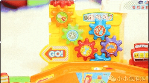 当赛车到达维修站,旁边的齿轮会快速转动,就像真正的赛车在赛场上争分夺秒的抢修。 上面的扳手也是可以手动的,有助于锻炼宝宝的手指精细动作喔!